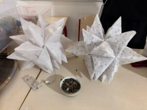 Anschließend konnten in stimmungsvoller Atmosphäre  liebevoll gebastelte Kunstwerke der einzelnen Klassen erworben werden. Zudem gab es das Schulverein Glücksrad, eine Tombola, Dosenwerfen, Kinderschminken, Karten schreiben und Klötzchensterne basteln. Für das leibliche Wohl war ebenfalls gesorgt. Der Schulverein bot, mit Hilfe der engagierten Eltern, Kaffee und Kuchen, Bratwurst, Punsch und Softdrinks an. Die Q1 versorgte die Gäste mit leckeren Waffeln.